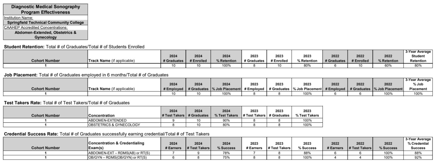 Program Goals The goal (minimum expectations) of the DMS program is to prepare competent entry-level sonographers in the cognitive (knowledge), psychomotor (skills), and affective (behavior) learning domains for the following concentrations it offers: Abdominal sonography - Extended Obstetrics and gynecology sonography Program Objectives The STCC Diagnostic Sonography program provides structured courses in didactic, laboratory, and clinical education to prepare students to earn an associate in science degree in Diagnostic Medical Imaging and to successfully complete ARDMS credentialing exams in Abdominal-Extended and OB/GYN ultrasound. The program will: - Ensure students gain knowledge of physics, anatomy, physiology, pathology, and imaging principles.